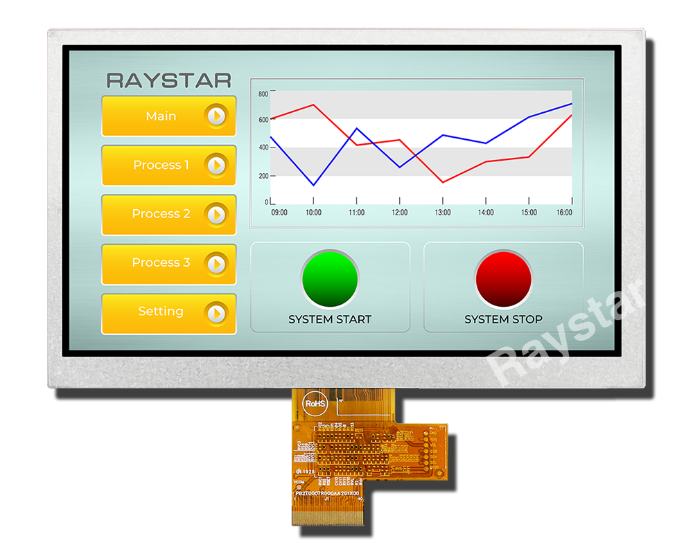7" 800x480 High Brightness, Wide Temperature IPS TFT LCD
